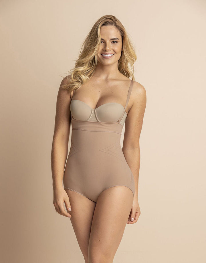 This shaper comfortably controls your entire torso and gives full back support. Made of SkinFuse®, a seamless technology: Very light fabric, with no seams and is completely no show under clothing. Rear is covered with light fabric to maintain natural hip shape.