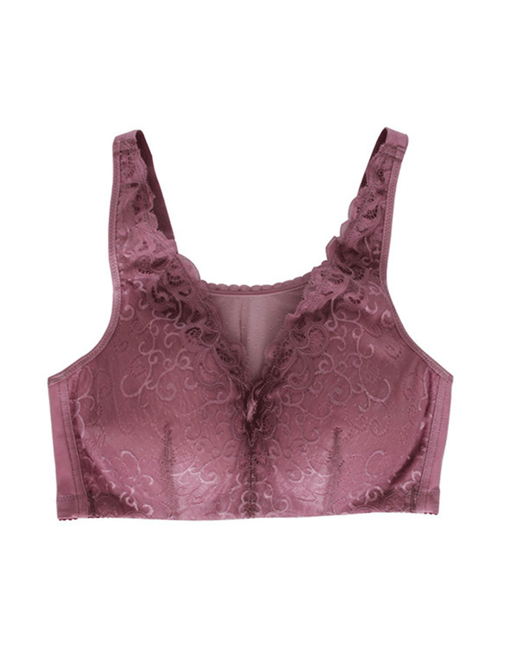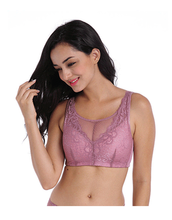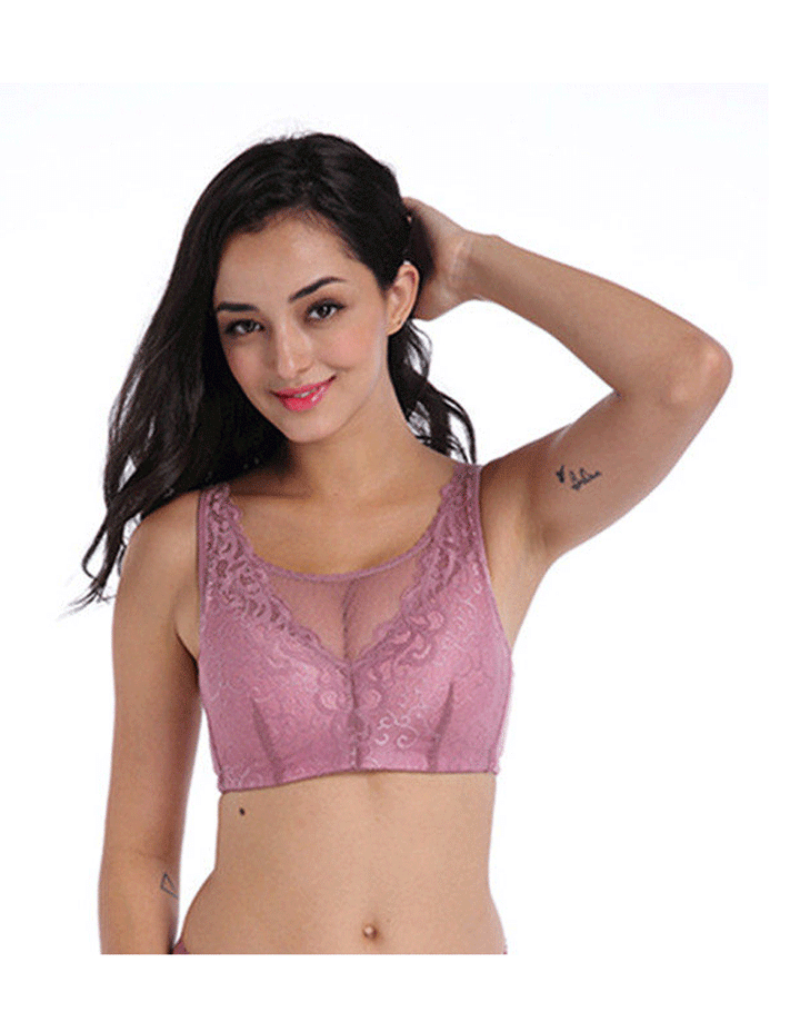 FASHION LACE POST SURGICAL BRA WITH POCKETS- PURPLE
