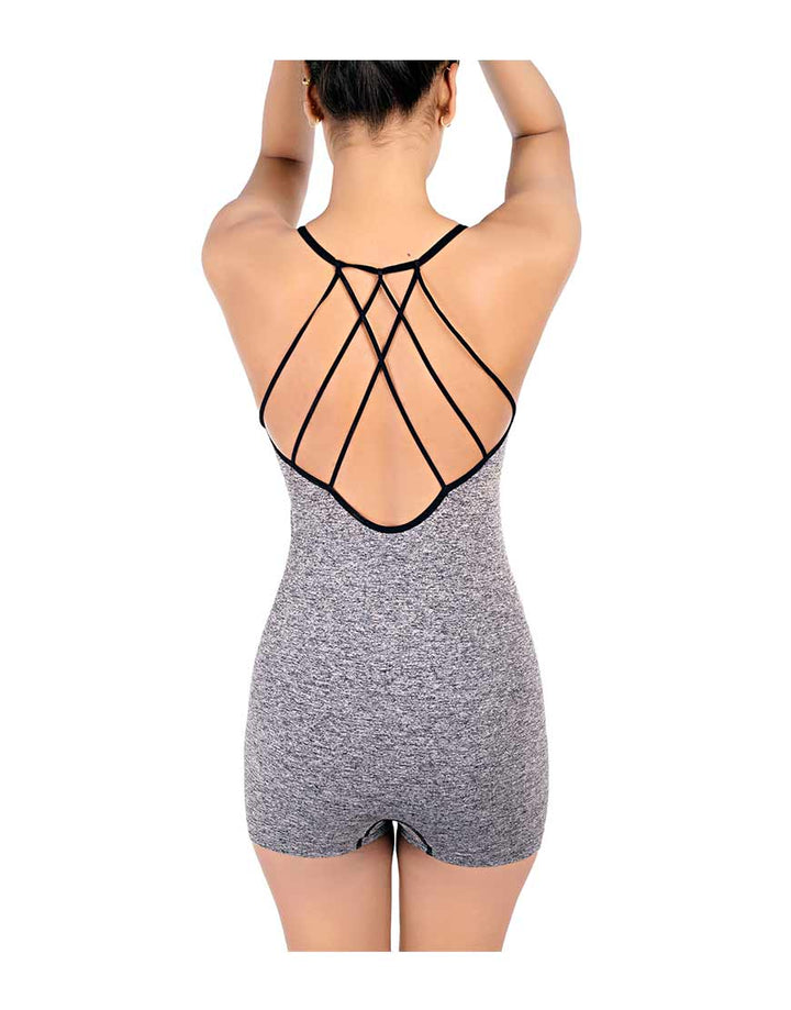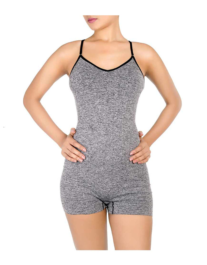 This heather black elasticated bodysuit covers mid thighs and flattens the tummy while lifting the butt. The straps design at the back looks feminine yet sultry. The fabric is stretchable and skin friendly and sits so well on the skin like an invisible support. Pair it with a high waisted bottoms for a flattering look or wear underneath your favorite outfit for a seamless look.