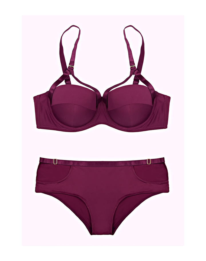 Cage cup design push up bra set with a cutout panty design. Level 1 push up gives your bust round shape with some lift and cage design adds beauty to it. Straps are convertible at the back to make a a cross style