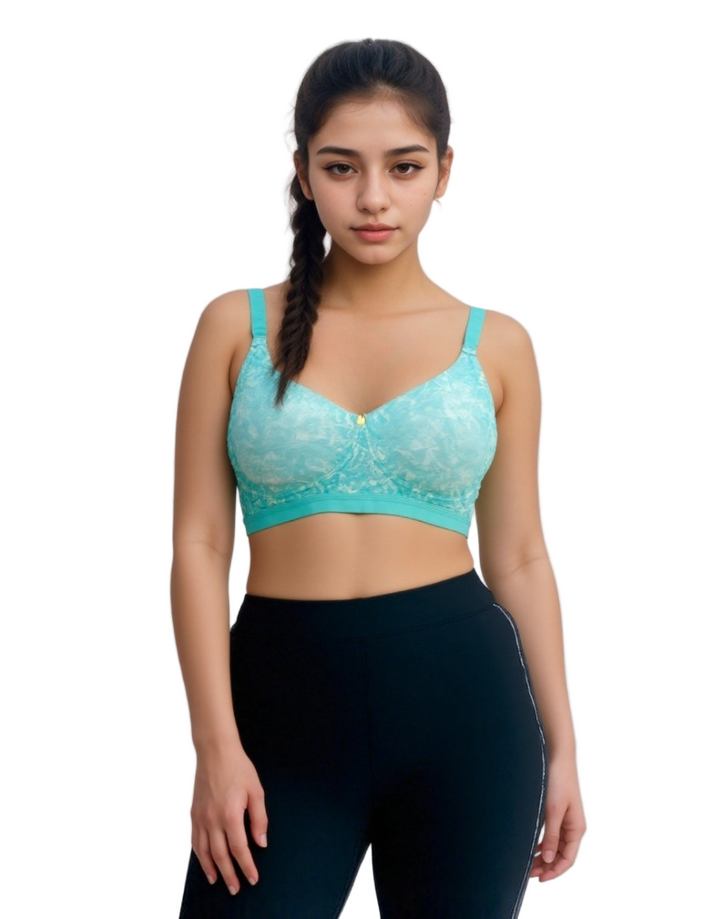 Losha True Curv Double Layered Non Wired Full Coverage Super Support Bra - Green Print