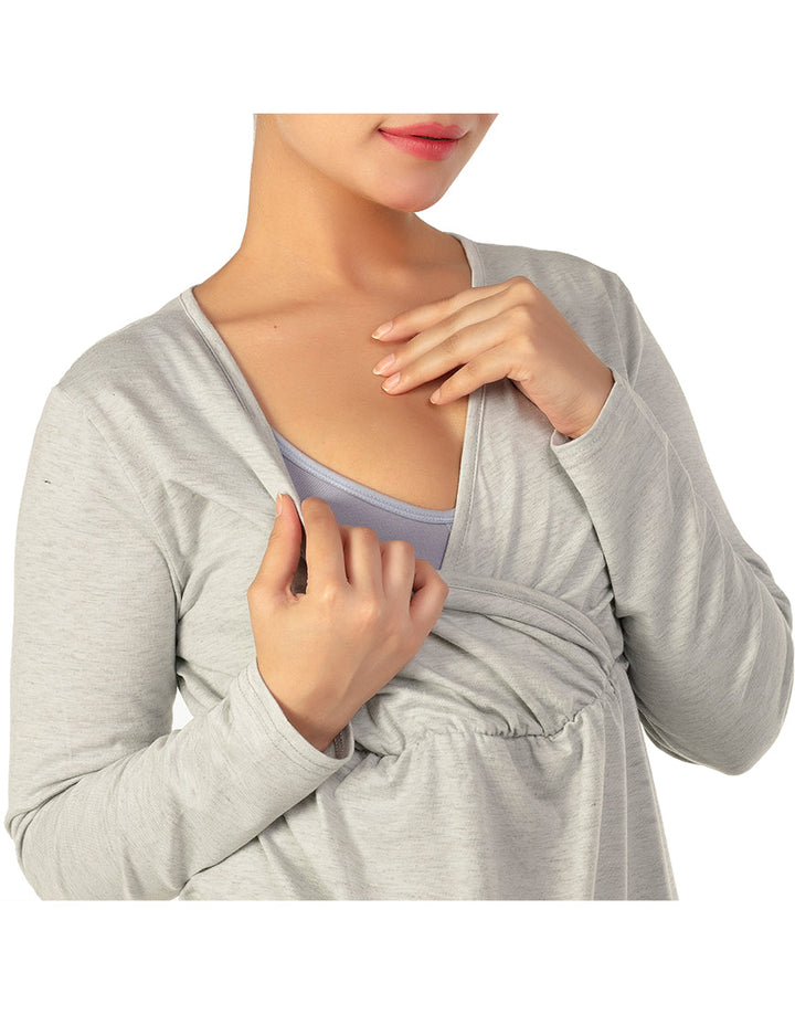LOSHA MOMMY FULL SLEEVES NURSING SHIRT-GREY