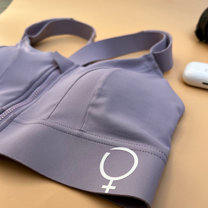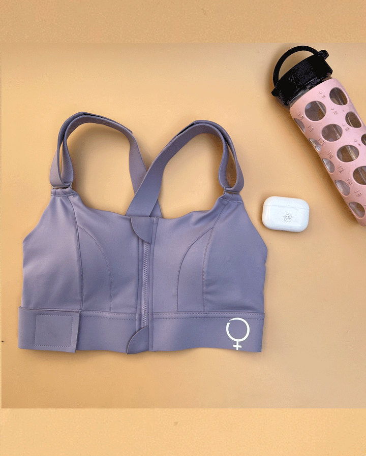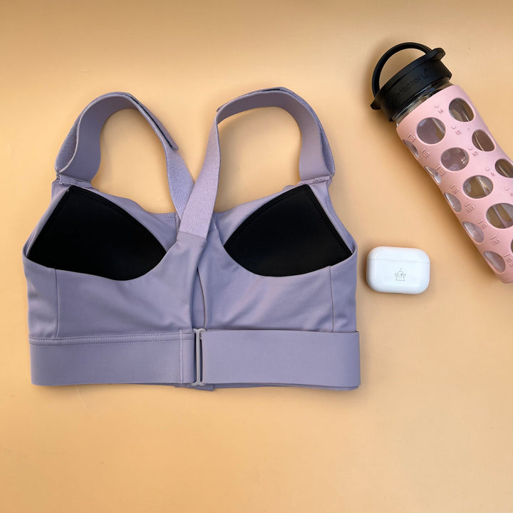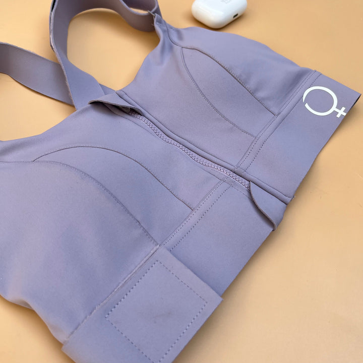 LOSHA PREMIUM QUALITY FRONT CLOSURE PADDED HIGH IMPACT SPORTS BRA WITH ADJUSTABLE WAIST BAND-LAVENDER