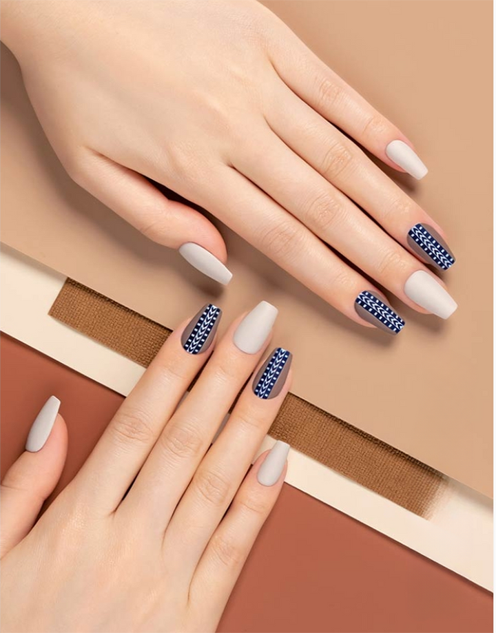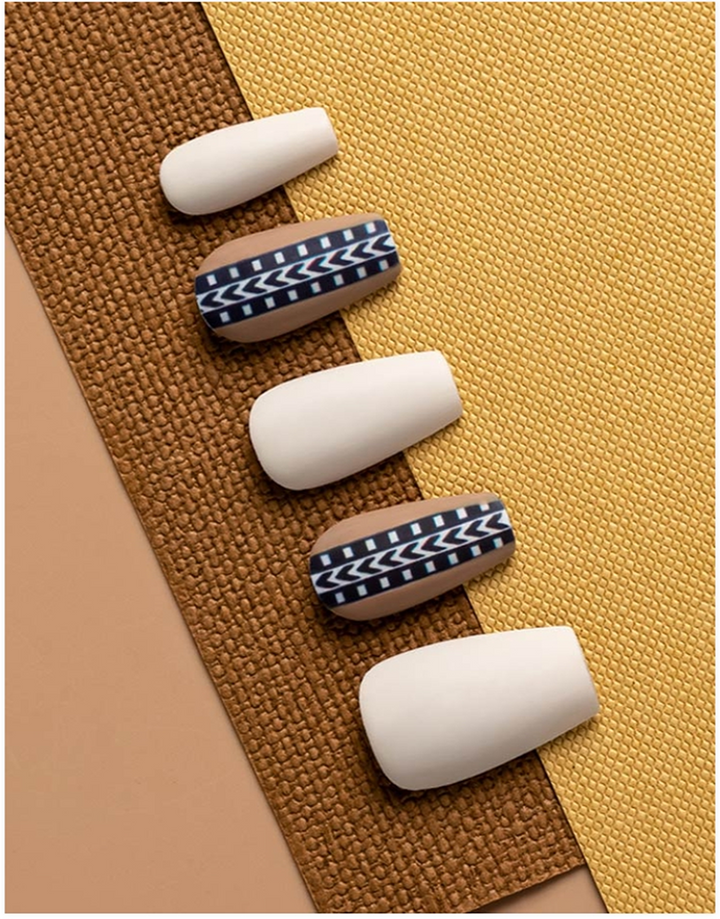 A stunning mix of earthy neutrals and intricate tribal-inspired patterns, this design blends warm matte tones with bold geometric accents. Perfect for those who love a balance of minimalism and artistic detail.