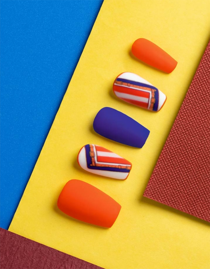 A festive nail set featuring cozy holiday elements, including a knitted sweater texture, golden shimmer, and classic Christmas icons like mittens and ornaments. A perfect blend of elegance and holiday cheer!