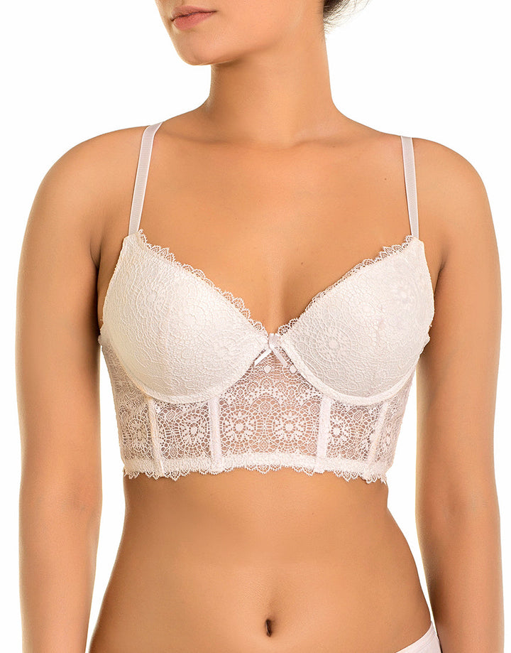 LACE MESH LONGLINE PUSH UP BRA SET- WHITE