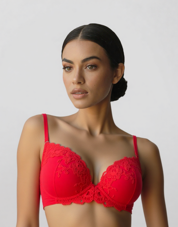 LIGHTLY PADDED WIRED FANCY BRA WITH MATCHING PANTY-RED