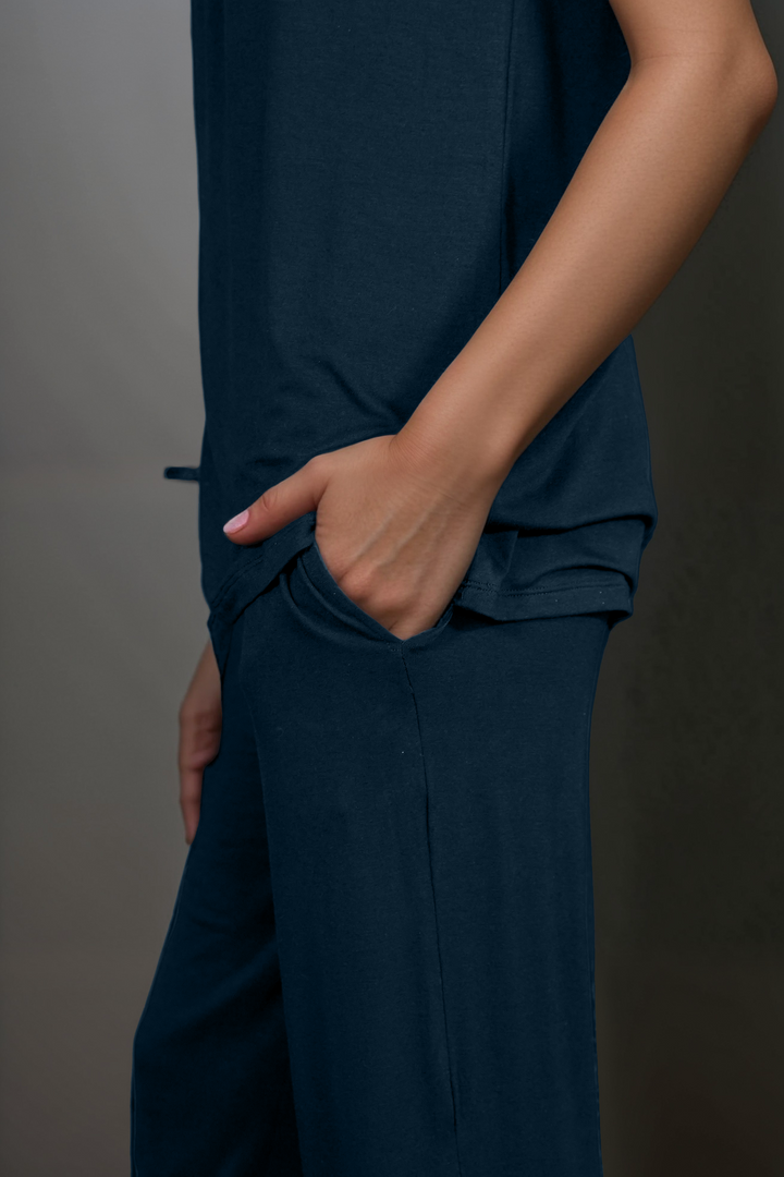 Stay comfortable and stylish with the Losha 2-piece set in an elegant navy color, perfect for lounging or casual wear.