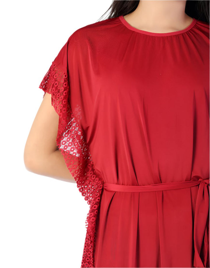 2 PIECE ROUND NECK SIDE LACE LONG NIGHTY -MAROON
