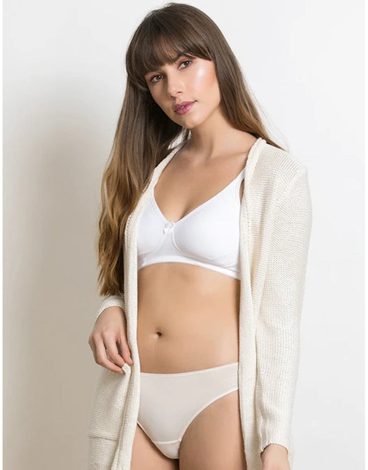 Double layered cups provide good support and now show of nipples under the clothes. It has no underwires for all day comfort. This bra is created with multiple seems on outer sides of cup stating from top to bottom which provides extra strength and support to the bust pushing your bust tissue towards center to give good shape. There is no spillage because of good coverage of cups. Cotton is a natural fiber and its breathable and absorbent so it can a choice for all seasons specially for women who can not wear anything but cotton.