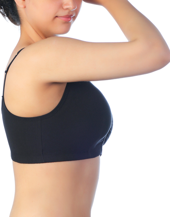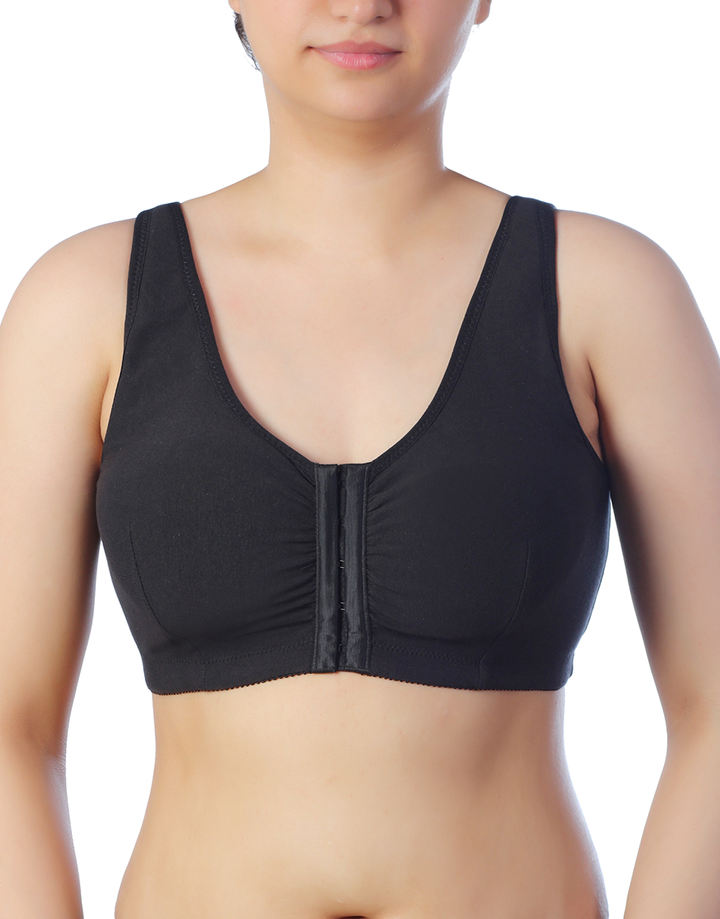 COTTON FRONT CLOSURE POST SURGICAL BRA WITH POCKETS-BLACK