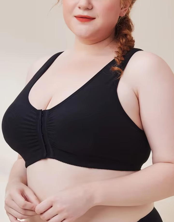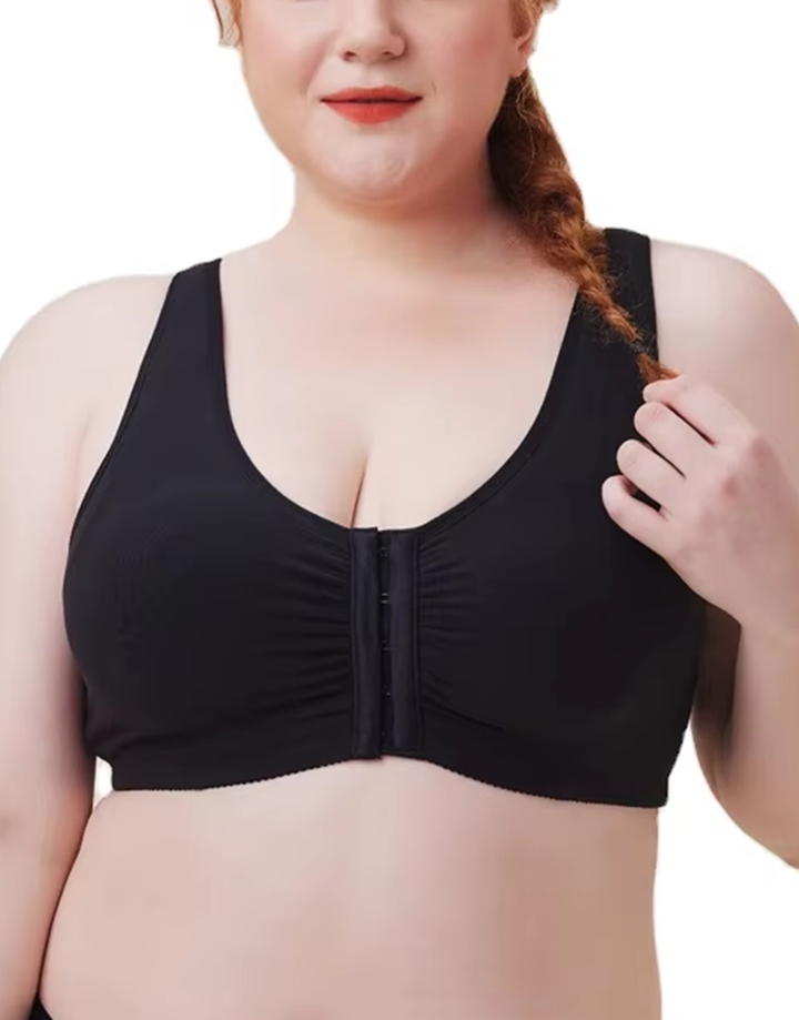 This is a front open post surgical bra. It has 5 hooks, and elastic band for comfort. It has cushioned shoulder straps for no-digging and adjustable straps at the back. FEATURE: full-coverage non-padded 5 front hooks, cushioned straps, adjustable straps