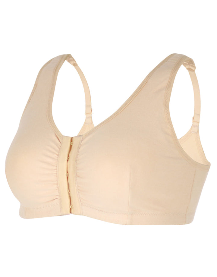 This is a front open post surgical bra. It has 5 hooks, and elastic band for comfort. It has cushioned shoulder straps for no-digging and adjustable straps at the back. FEATURE: full-coverage non-padded 5 front hooks, cushioned straps, adjustable straps