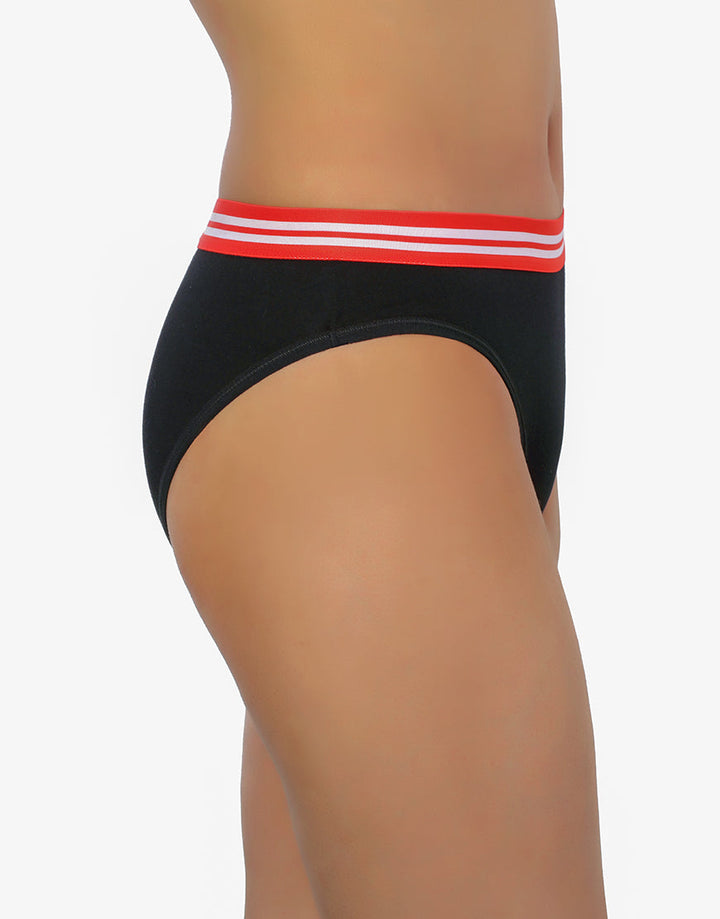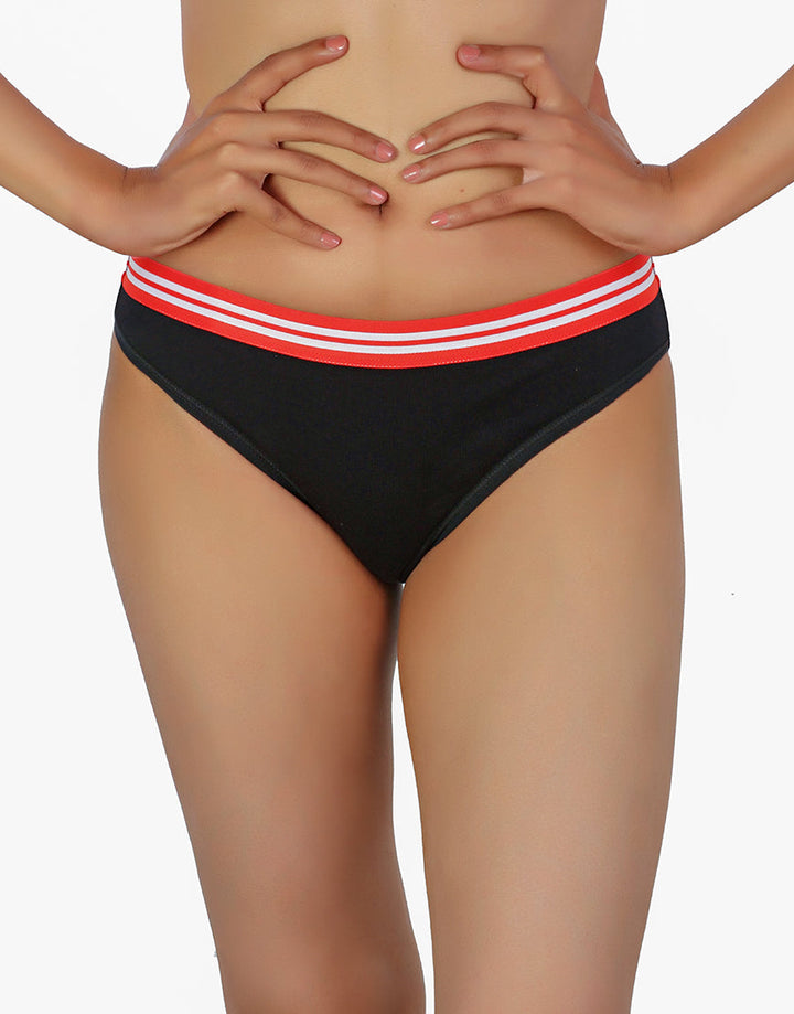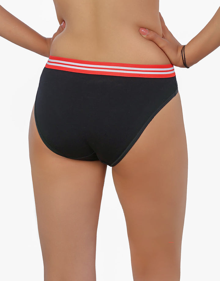 COTTON LOW WAIST BIKNI BREIF WITH STRIPED ELASTIC WAIST BAND-BLACK