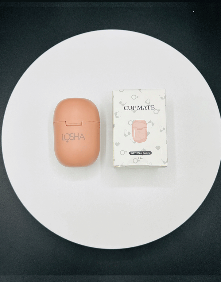 - A compact, portable case for sterilizing and storing a menstrual cup.