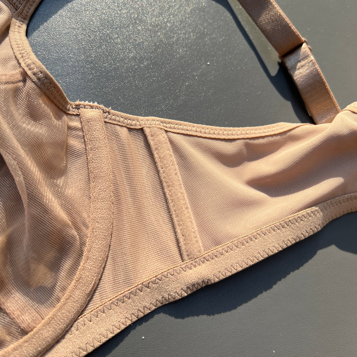 Losha Curvy Double Layered Minimizer Wired Bra with Lace Touch-BEIGE