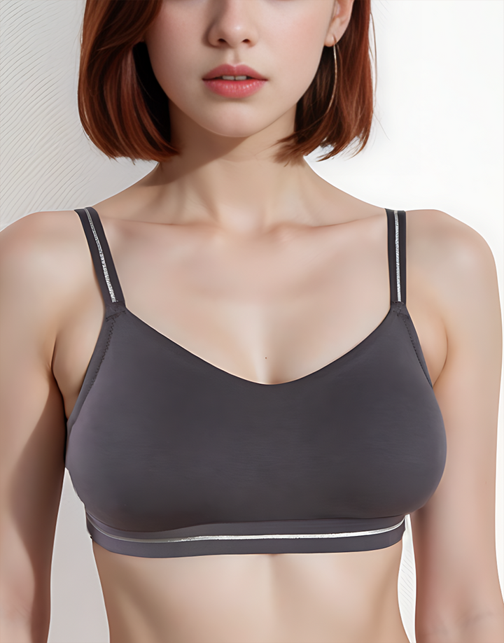 The cami bra style is designed to move with the body and provide a comfortable, supportive fit. This bra comes with a round neckline, is non-padded, and is non-wired to provide all-day comfort! It has stretchable elastic glittered strips as the waistband and shoulder straps. The side support provides extra stability to the cups and shapes the bust.