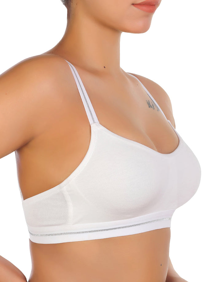 DOUBLE LAYERED COTTON WIREFREE BRA WITH GLITTER ELASTIC WAIST BAND -WHITE