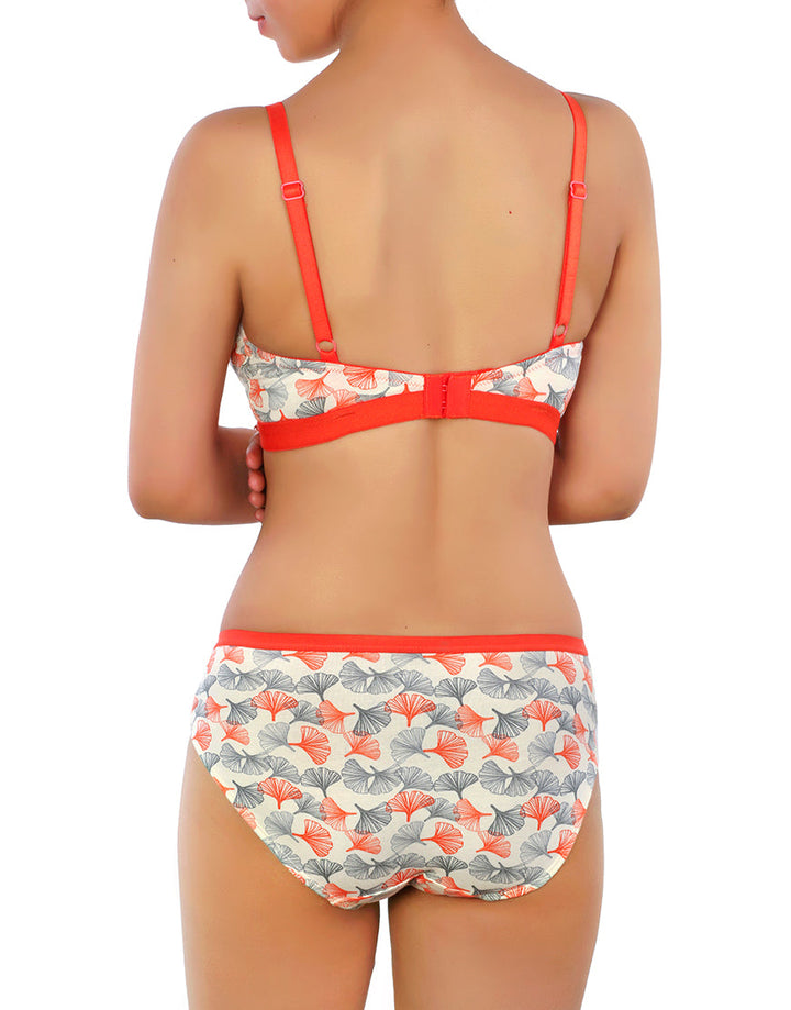 DOUBLE LAYERED COTTON WIREFREE BRA WITH MATCHING PANTY-ORANGE
