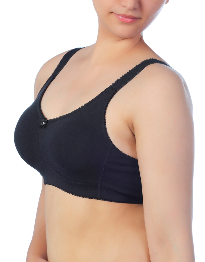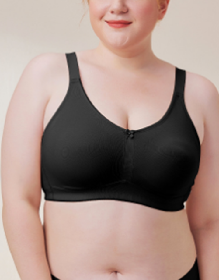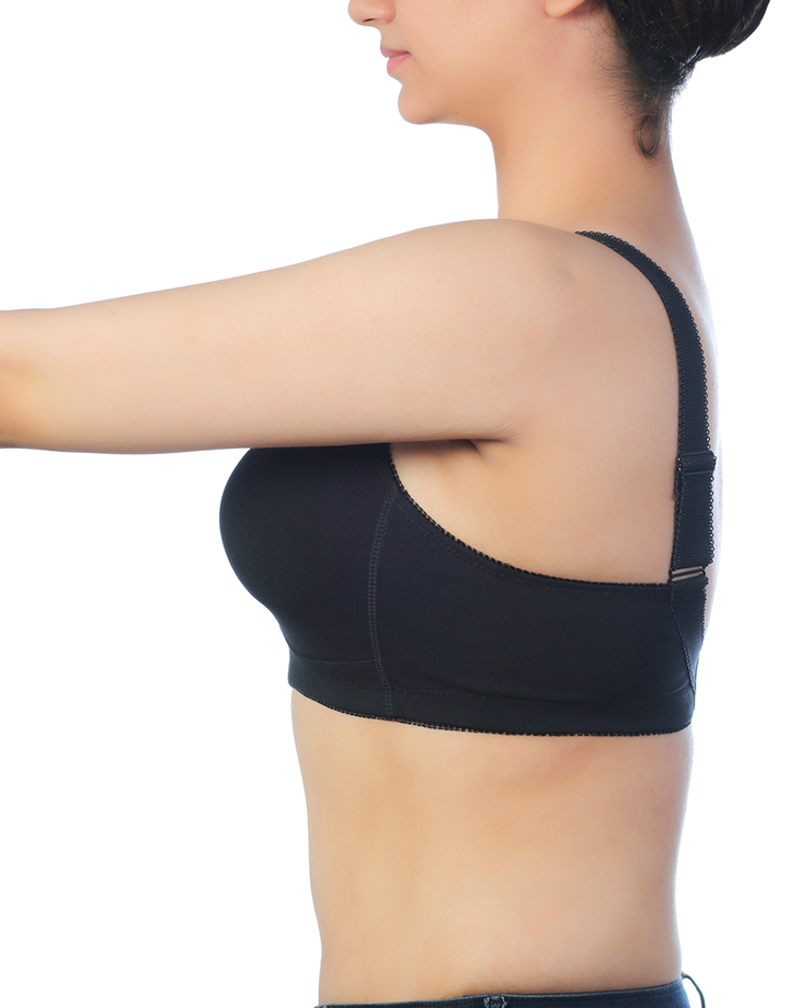 FULL COVERAGE POST SURGICAL BRA WITH BROAD ELASTIC STRAP -BLACK