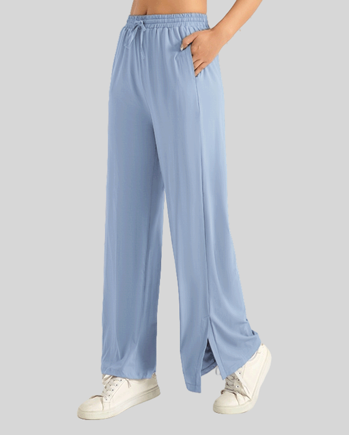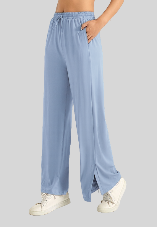 Losha Wide-Leg Side-Slit Jogger Pants -BLUE