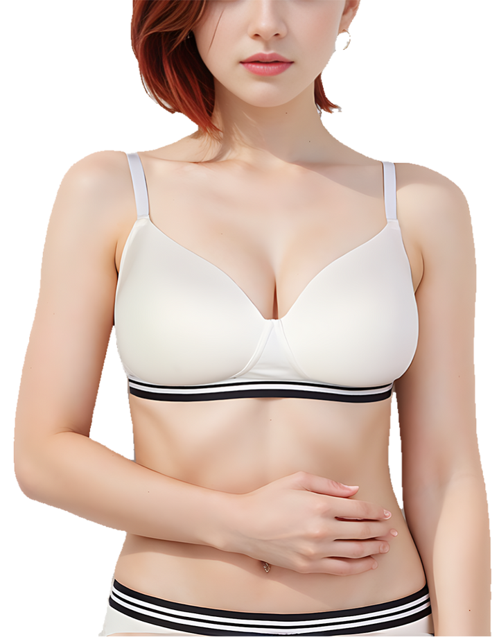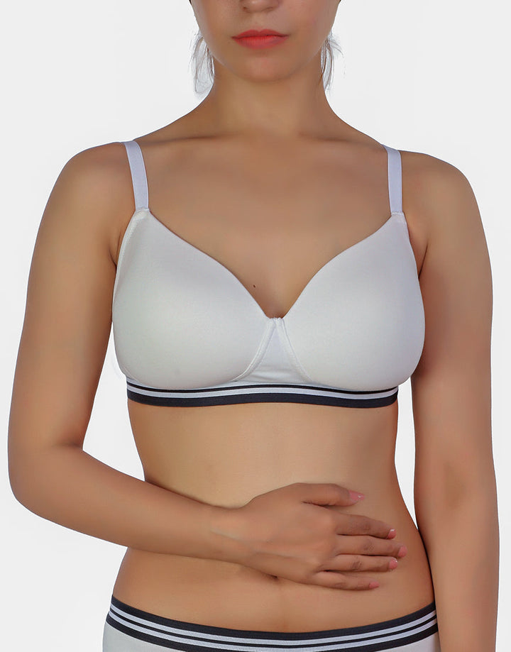 LIGHTLY PADDED NON WIRED TSHIRT BRA WITH STRIPED ELASTIC WAIST BAND-WHITE