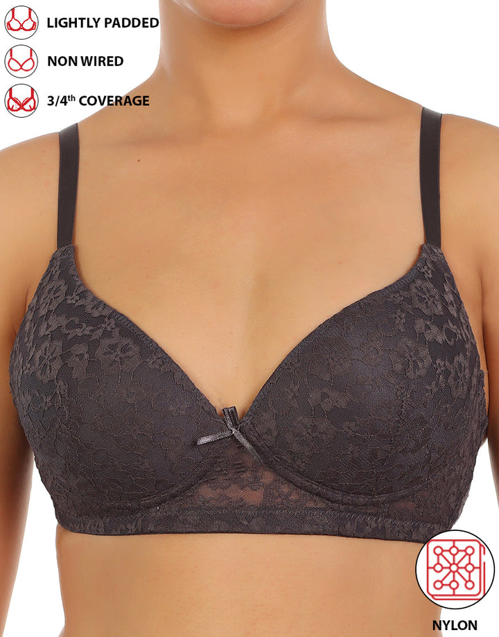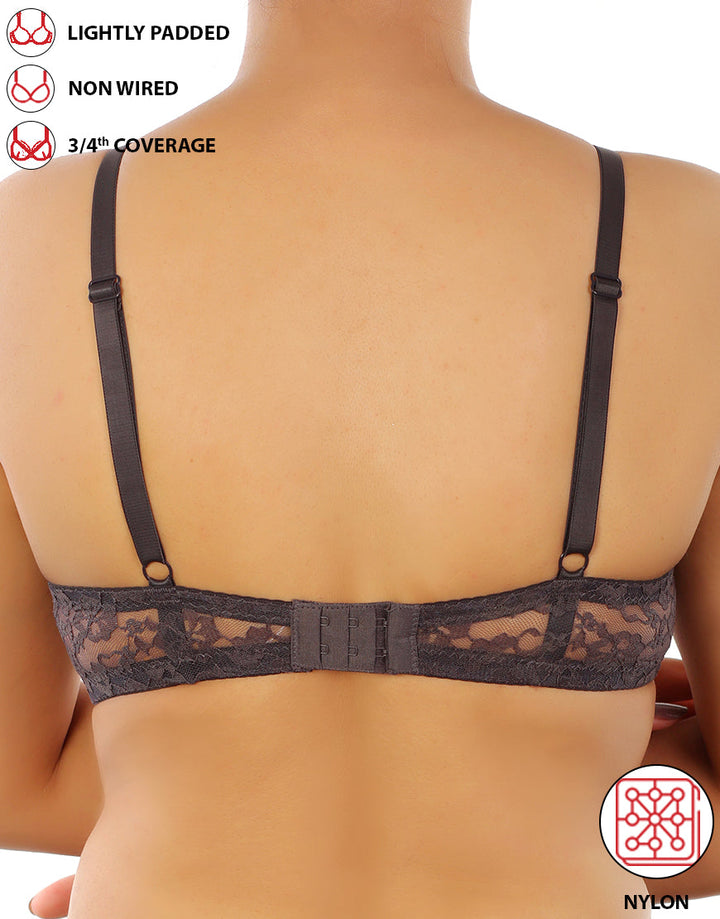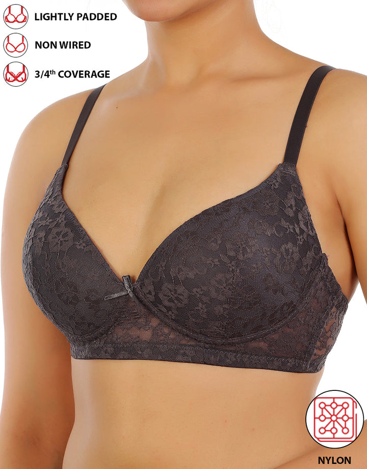 LIGHTLY PADDED WIRE-FREE 3/4TH COVERAGE ALL OVER LACE BRA- FORGGED IRON