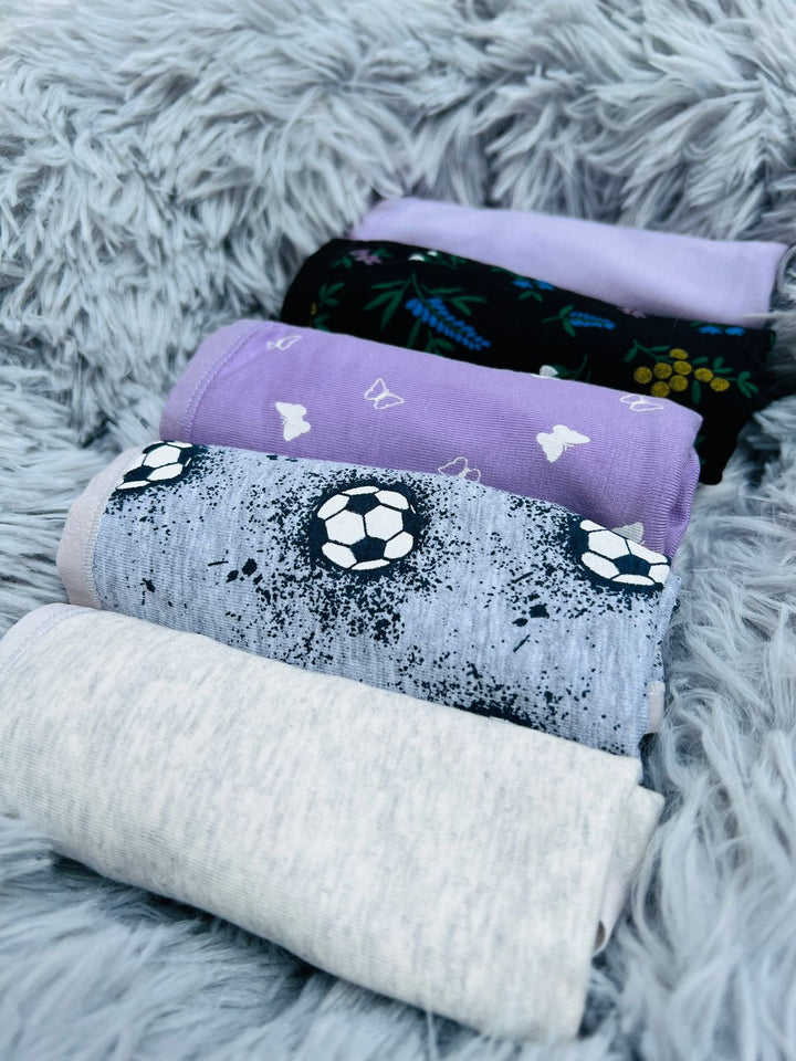 PACK OF 5 SUPER SOFT COTTON STRETCH PRINTED BIKINI BRIEFS -FOOTBALL
