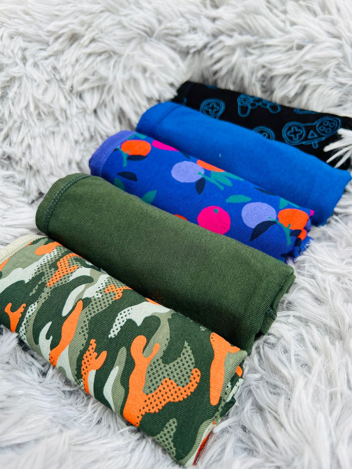 PACK OF 5 SUPER SOFT COTTON STRETCH PRINTED BIKINI BRIEFS -GREEN ARMY