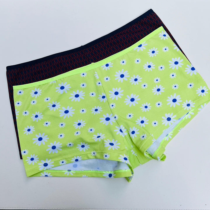 SUPER SOFT PACK OF 2 BOY SHORTS COTTON BRIEFS-DAISY PRINT+GEOMETRIC