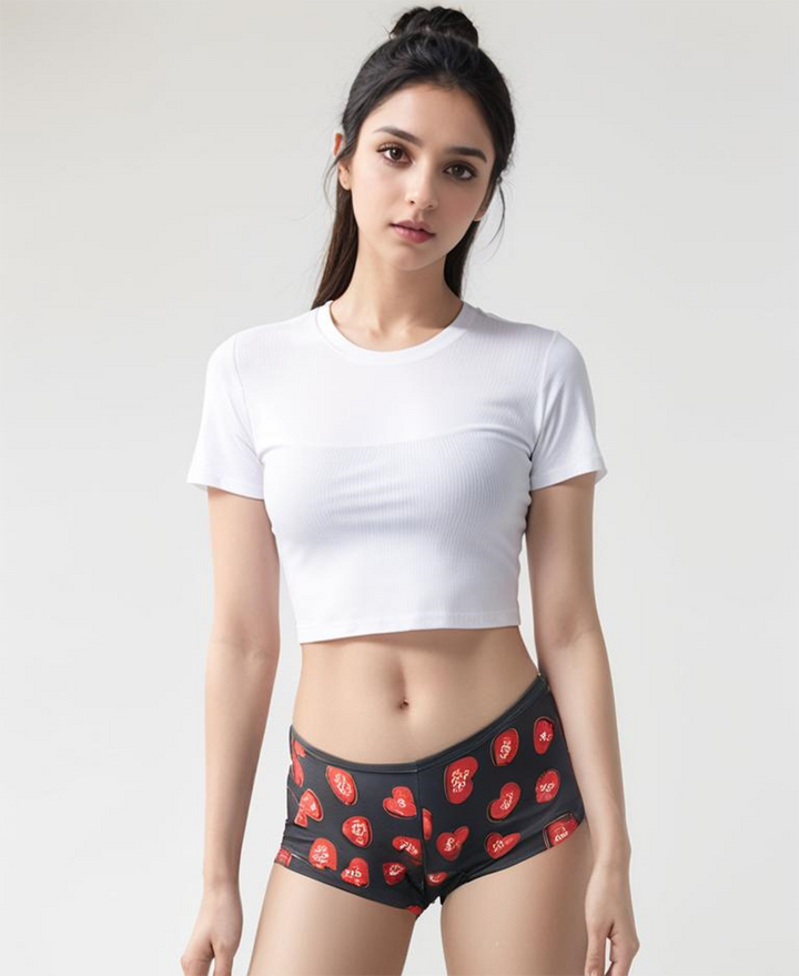 SUPER SOFT BOY SHORTS COTTON BRIEF-RED HEARTS
