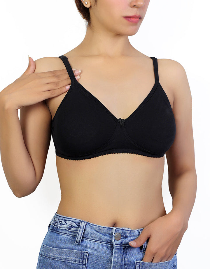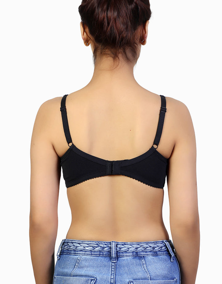 SUPPER SOFT SIDE SUPPORT COTTON BRA WITH HIDDEN NIPPE COVER -BLACK