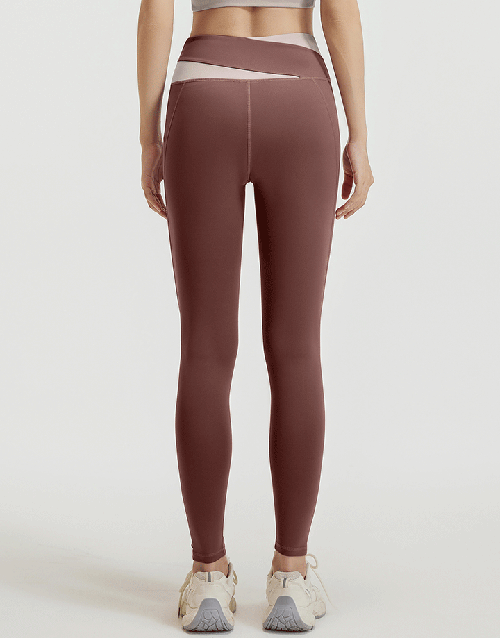 The criss-cross waist design of the V-shaped pants will not roll down while doing yoga and workouts. Seams at the back perfectly shape the curves of your hips. No front seam and anti-camel toe design minimize friction. It comes with 4-way stretch and ankle support. The waistband is seamless and does not roll down or dig in.