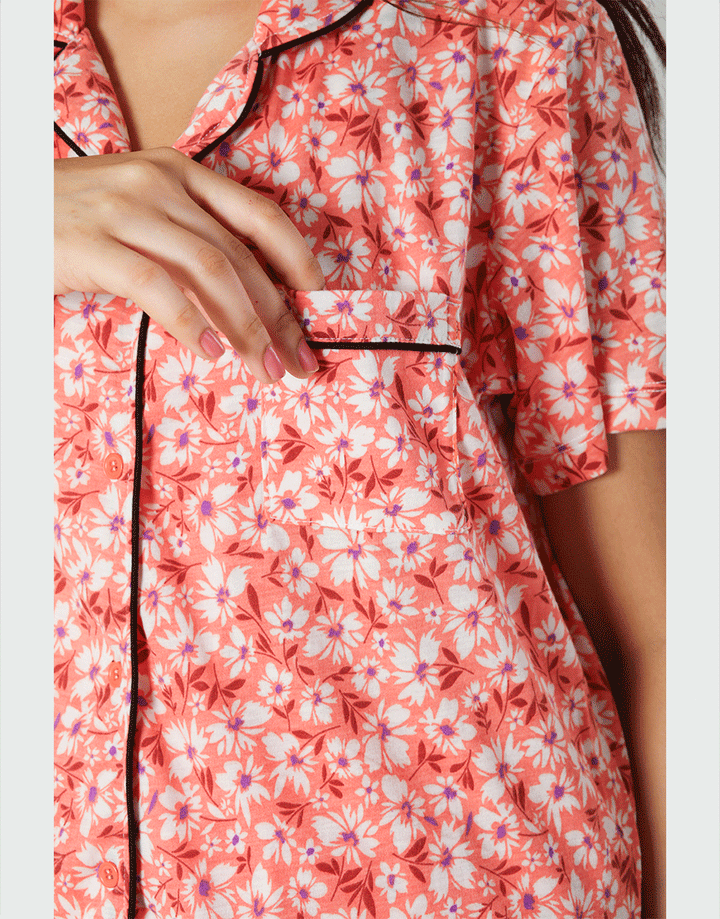 SIESTA COTTON BUTTON DOWN SHIRT & PJ SET- FLORAL PEACH
