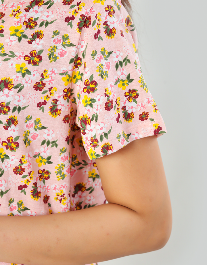 LOSHA COTTON PRINTED TOP & PJ SET- PINK