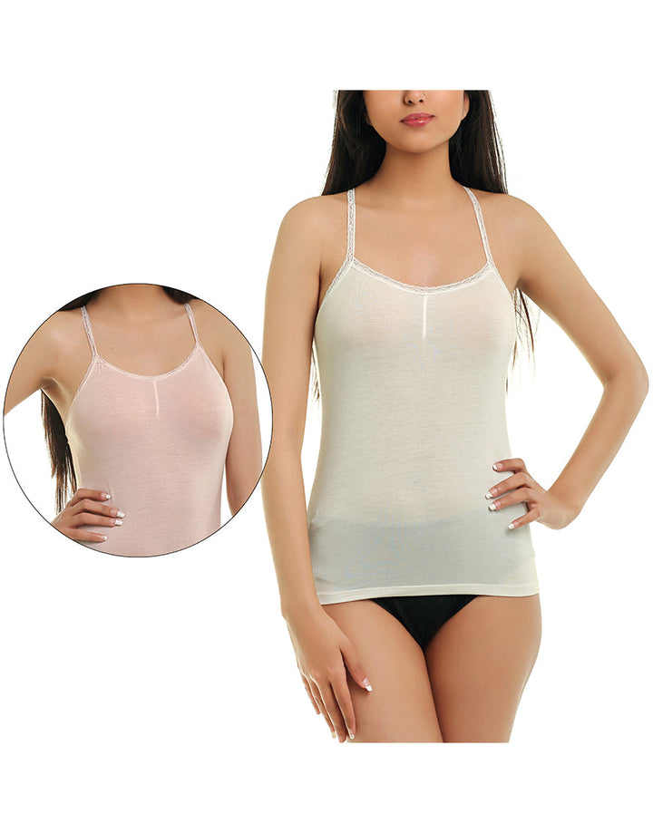 This is a pack of 2 super soft stretch-enhanced camisole set. Comes with adjustable J-hook straps.